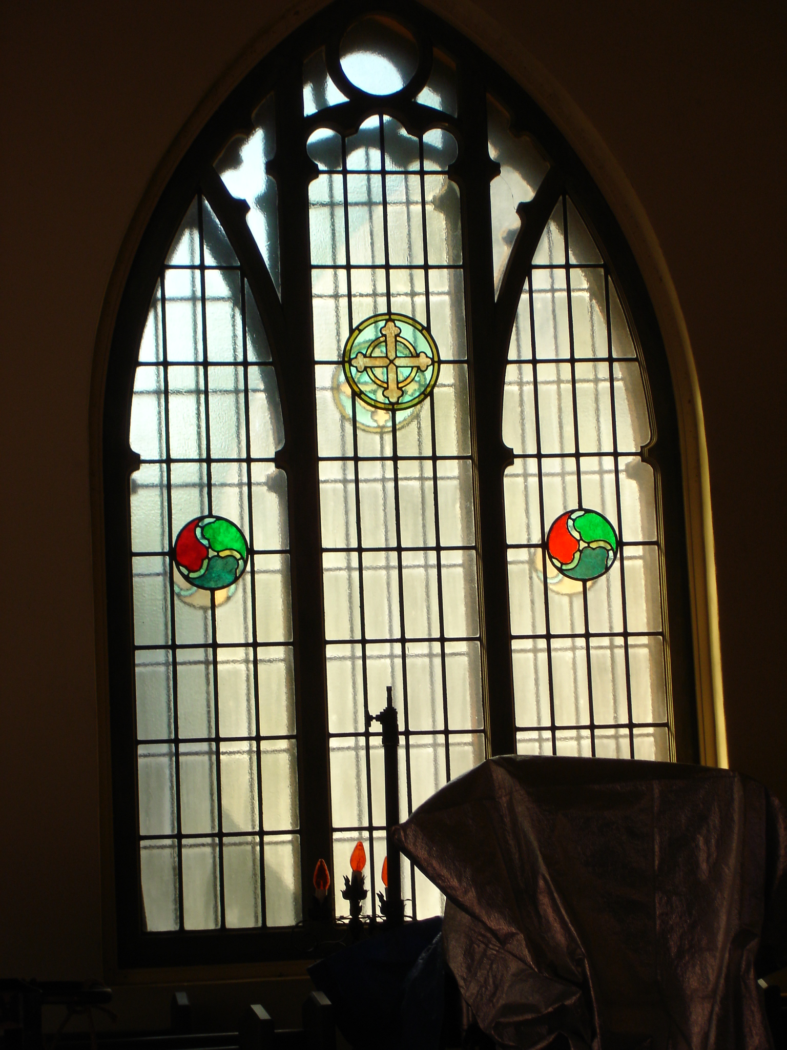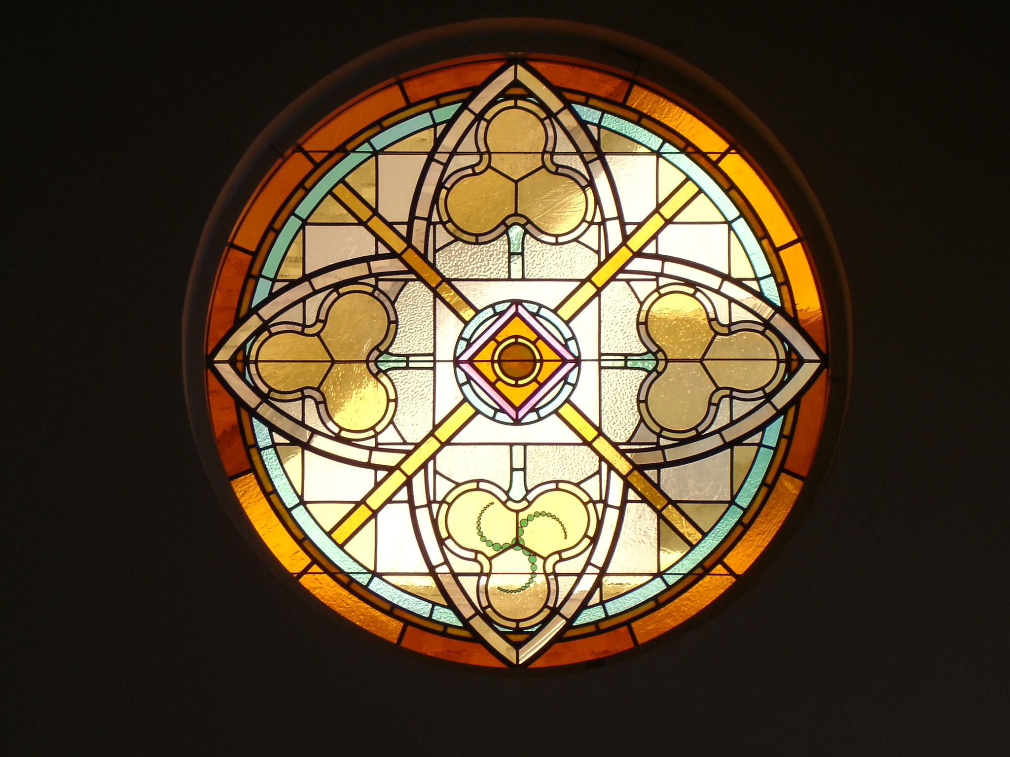 Creepily enough their were actual stained glass windows with the symbol already in it.